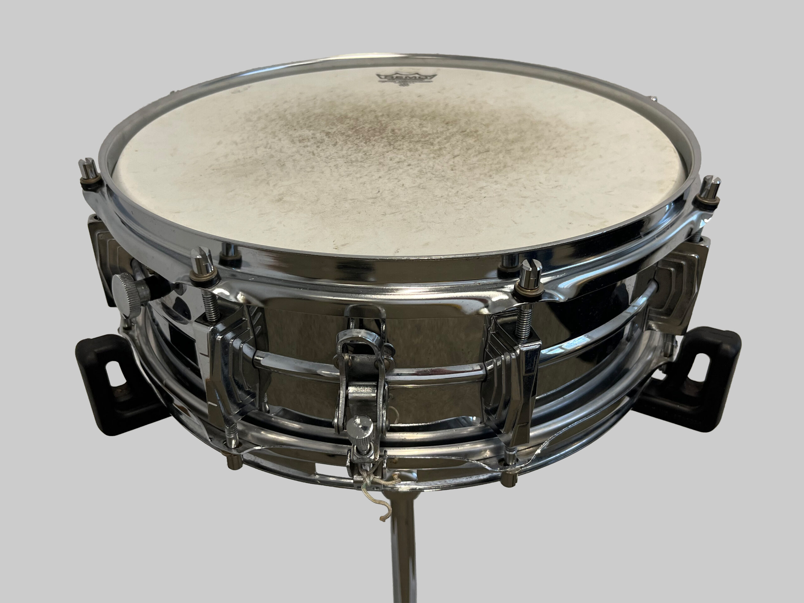 Verchromung mit einzelnen Schäden, siehe Bilder. Kein Einfluss auf den grossartigen Klang dieser Vintage-Snare.